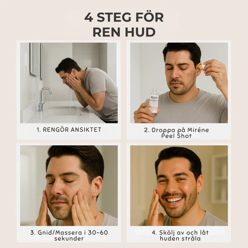- KEMISKT LÖSANDE (osynlig, men kraftfull): AHA + BHA + PHA-syror penetrerar djupt och löser upp "cementet" mellan döda celler och talg. Som en nyckel som låser upp tilltäppta porer inifrån.